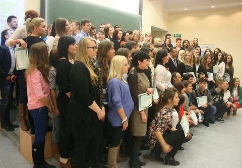 Po wystąpieniach nastąpiła najważniejsza dla studentów część imprezy – wręczanie certyfikatów i pamiątkowe zdjęcia.