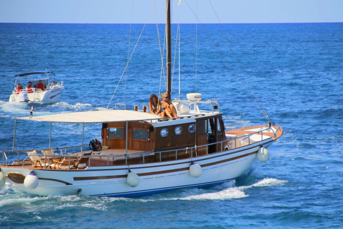 Nasz jacht z kilkunastoma pasażerami sprawnie odbija od kei i po ominięciu falochronu kieruje się wzdłuż klifowych wybrzeży półwyspu Akamas.