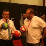 Co się dzieje na naszych stoiskach ? Jest kilka ciekawostek – możliwośc obejrzenia szlaków rowerowych w wersji 3D, mozliwość wirtualnego sterowania statkiem lub przyjrzenia się historii człowieka. Na jednym z końców hali, można zmierzyć siłę swego rzutu piłką do gry w szczypiorniaka (pomoga w tym jeden z naszych piłkarzy – Siódmak) – to stoisko reklamuje przyszłoroczne mistrzostwa Europy w piłce ręcznej, których organizatorem jest Polska.