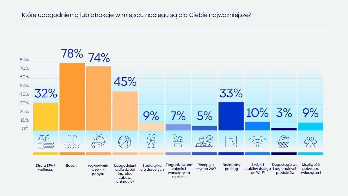 Poszukiwanie dodatkowych atrakcji i udogodnień nie powinno dziwić w kontekście faktu, że odpoczynek i relaks jest głównym priorytetem dla 83 proc. badanych.