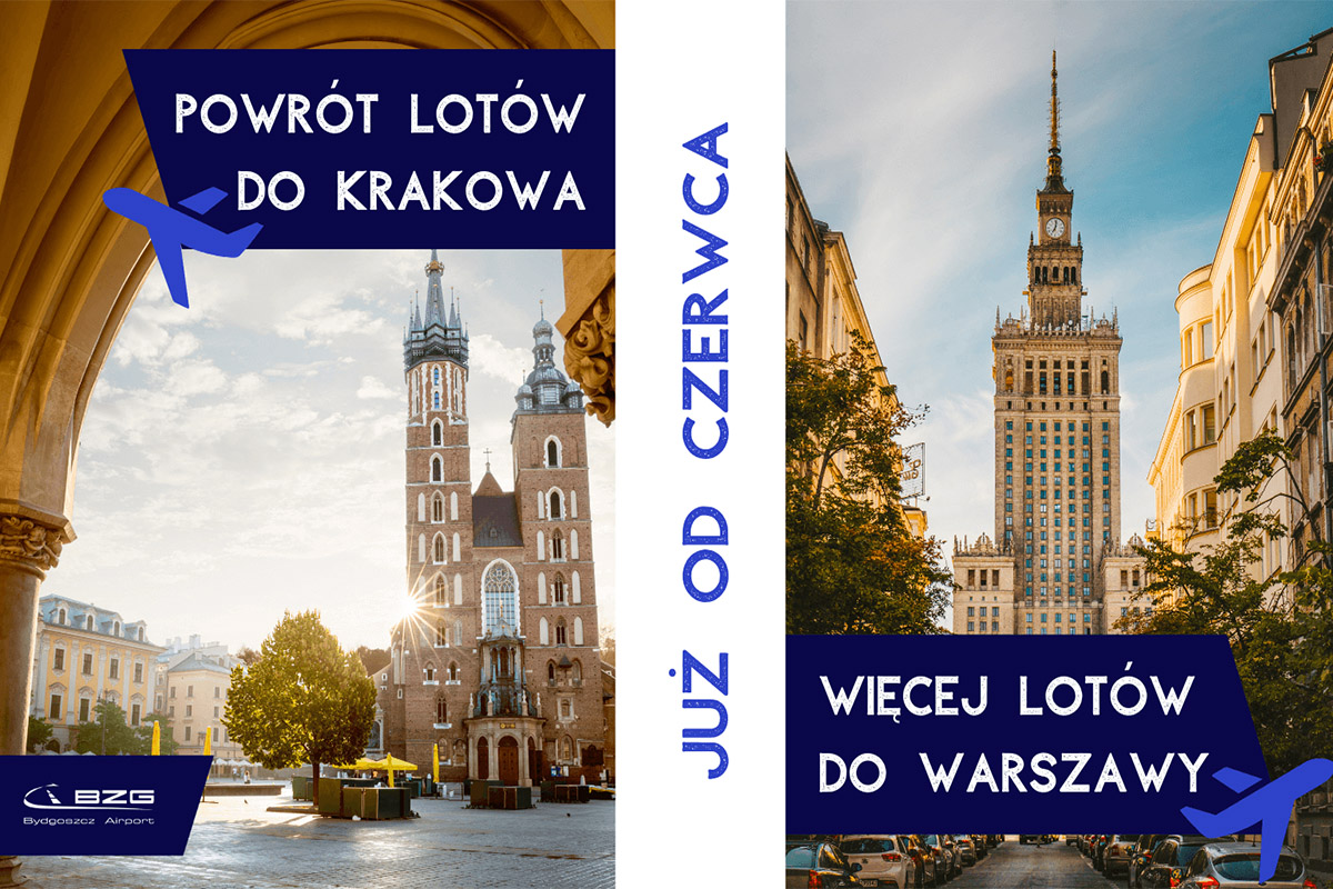 Przywrócenie lotów do Krakowa nie jest jedyną dobrą informacją. Polskie Linie Lotnicze LOT zdecydowały także o zwiększeniu liczby rejsów do swojego hubu w Warszawie. Od 17 czerwca loty do stolicy Polski realizowane będą siedem dni w tygodniu. Obecnie połączenie z Bydgoszczy do Warszawy jest realizowane od poniedziałku do piątku oraz w niedzielę.