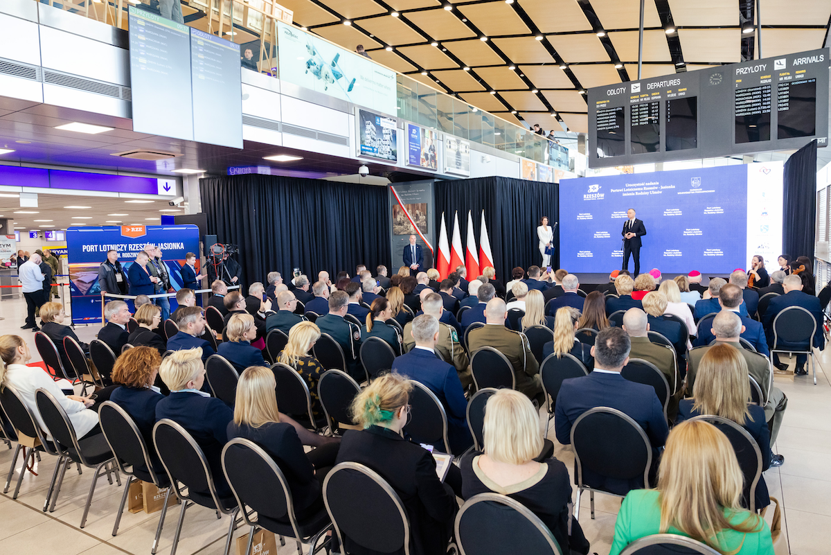 W terminalu lotniska Prezydent Rzeczypospolitej Polskiej Andrzej Duda, wraz z Marszałkiem Województwa Podkarpackiego Władysławem Ortylem oraz prezesem lotniska Adamem Hamryszczakiem, odsłonił pamiątkową tablicę. Jej częścią jest – przygotowany przez podkarpackiego artystę Arkadiusza Andrejkowa –deskal, przedstawiający Rodzinę Ulmów. Natomiast kardynał Marcello Semeraro poświęcił odnowioną kaplicę oraz obraz błogosławionej Rodziny Ulmów.