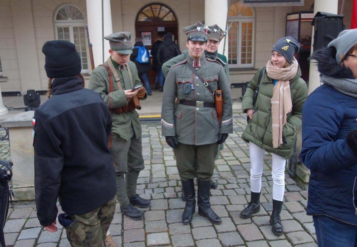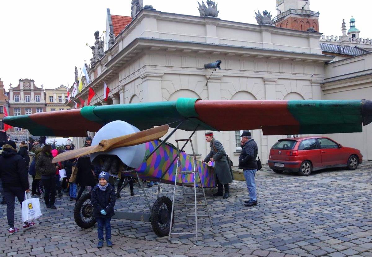 Na Starym Rynku przed Muzeum Powstania Wielkopolskiego w Odwachu, rekonstruktorzy rozbili obóz. Do dyspozycji odwiedzających były samochód pancerny, armaty i samolot z epoki oraz grochówka z kuchni polowej. Ułani dokonali uroczystej zmiany warty i potem wspólne zdjęcia przed Ratuszem.