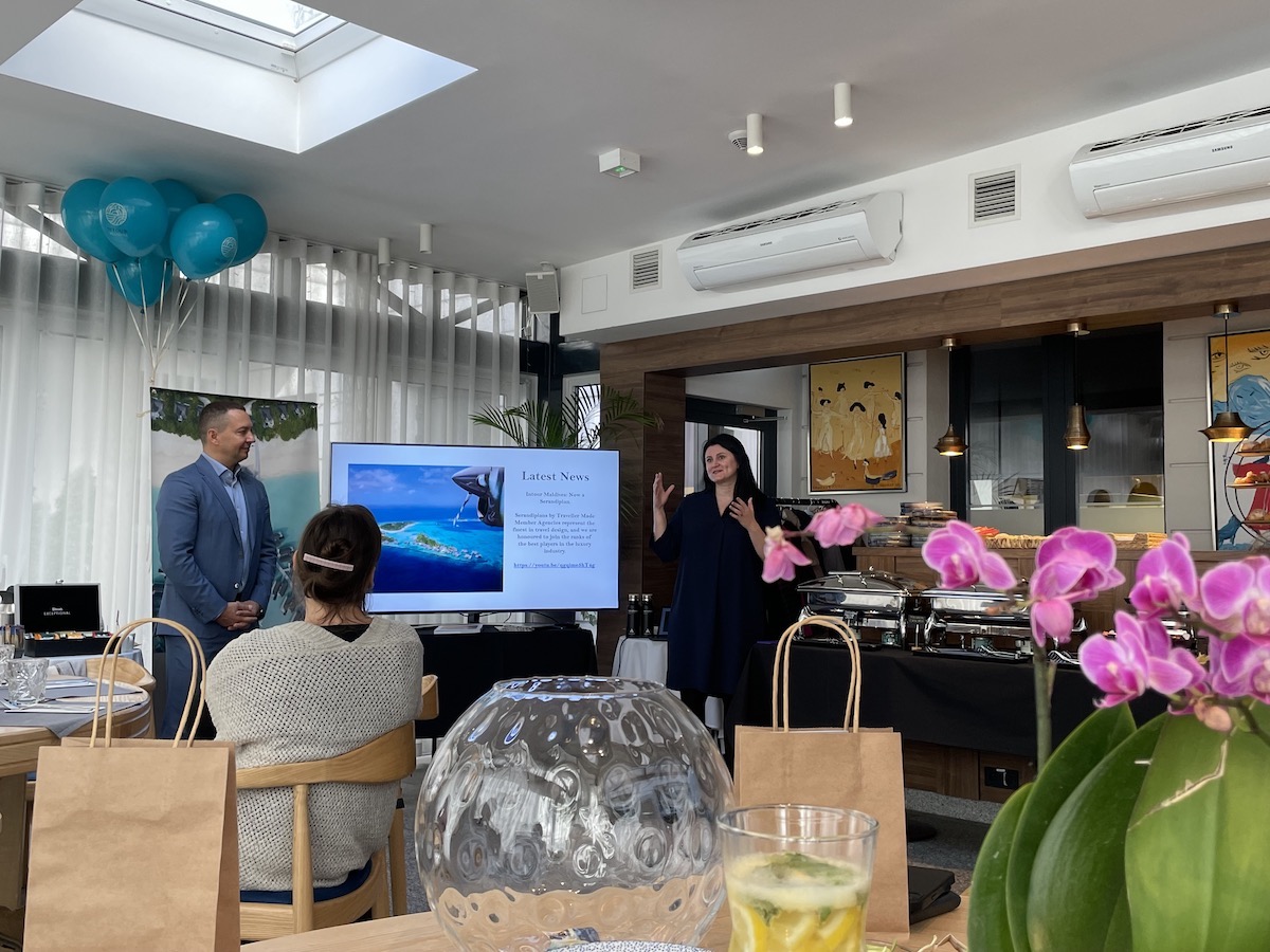 Intour Maldives, jedna z największych agencji turystycznych na Malediwach, zorganizowała w dniu 17 marca 2023 roku biznesowe śniadanie w Warszawie. Spotkanie było okazją do zapoznania się z ofertą Intour Maldives oraz nawiązania kontaktów biznesowych z przedstawicielami tej agencji. Podczas prezentacji przedstawiono zarówno atrakcje dostępne na terenie kurortu, jak i formy wypoczynku, takie jak nurkowanie, surfing, spa i wiele innych.