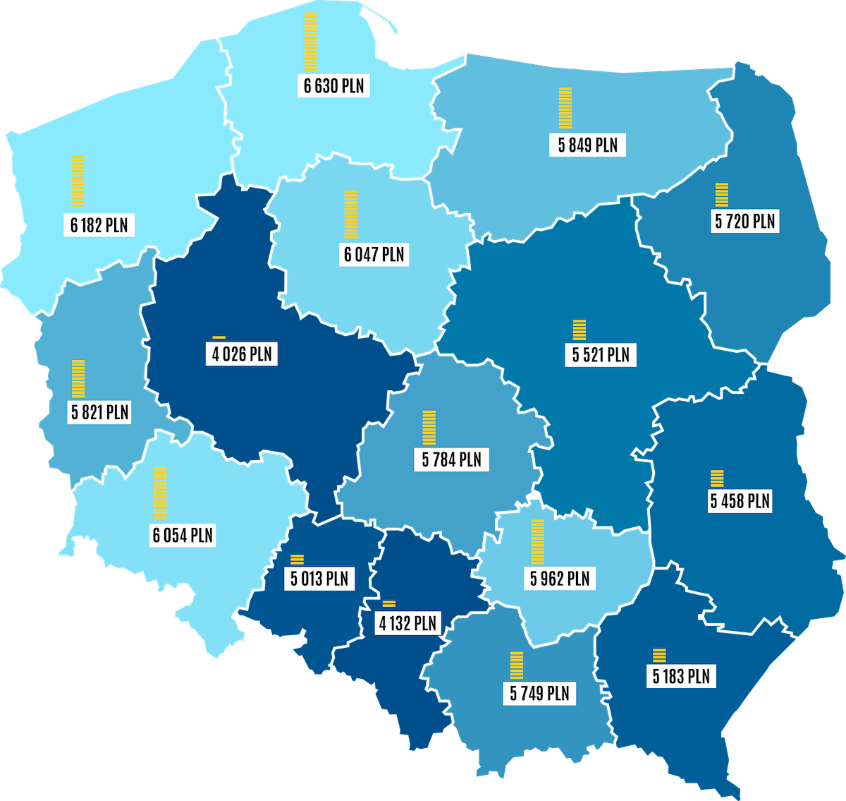 Jak wysokość tegorocznych wakacyjnych wydatków kształtuje się w poszczególnych województwach? Wyraźnie ponad średnią krajową, bo o około 1000-1300 zł więcej, w lipcu za urlop zapłacili mieszkańcy województw pomorskiego: 6 630 zł i zachodniopomorskiego: 6 182 zł. Na trzecim miejscu w tym rankingu znajdują się Dolnoślązacy – 6 054 zł. Najmniej na wakacje wydają mieszkańcy województw: wielkopolskiego – 4 026 zł, śląskiego – 4 132 zł i opolskiego – 5 013 zł.