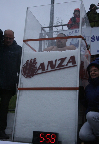 Podczas III Światowego Zlotu Morsów w Kołobrzegu, Zbigniew Falkowski z Podlasia spędził dwie godziny i dwie minuty w akwarium wypełnionym lodem.