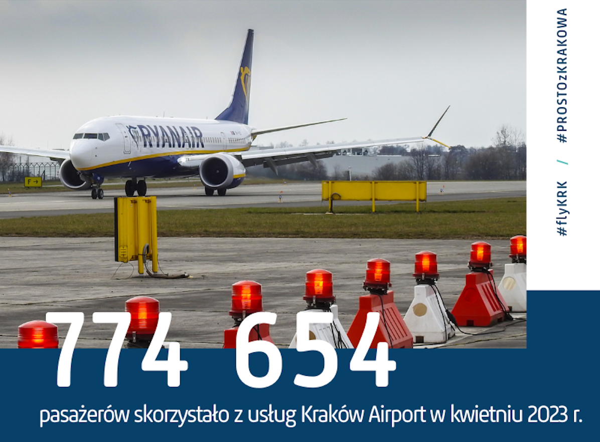 W kwietniu 2023 roku krakowskie lotnisko obsłużyło rekordową liczbę pasażerów. 774 654 osób skorzystało z usług lotniska, co oznacza 15 proc. wzrostu w porównaniu do kwietnia 2019 roku i o 31 proc. w stosunku do kwietnia 2022. Od początku roku liczba pasażerów na lotnisku w Krakowie wyniosła już 2 664 454 osób.