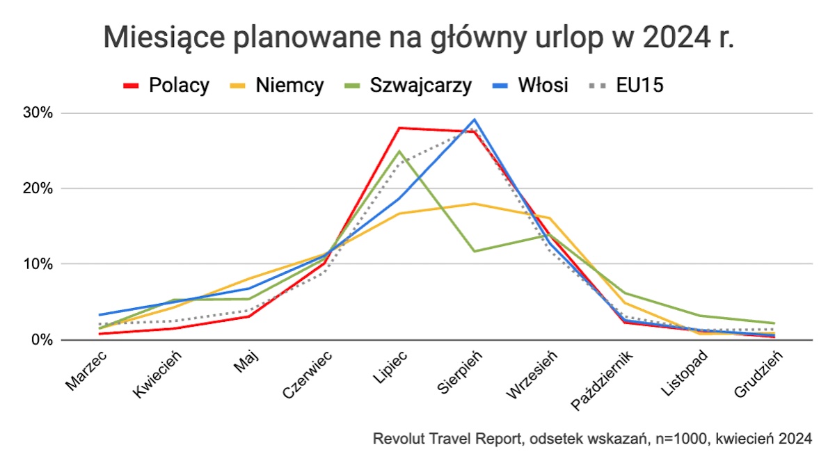 56 proc. zapytanych Polaków planuje główny urlop w lipcu i sierpniu. Hitem w Europie mogą być Włochy, Grecja i Hiszpania, ale Polacy stawiają na Chorwację. Animacje dla dzieci są ważne dla 18 proc. badanych Polaków, to najwyższy wynik w Europie.