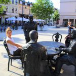 To między innymi Ławeczka Tuwima – spiżowy pomnik autorstwa Wojciecha Gryniewicza odsłonięty 10 kwietnia 1999 roku przy ulicy Piotrkowskiej 104 przed Pałacem Juliusza Heinzla, Fortepian Rubinsteina – pomnik autorstwa Marcela Szytenchelma odsłonięty 23 września 2000 przed kamienicą przy Piotrkowskiej 78, Kufer Reymonta – pomnik Władysława Reymonta przy Pałacu Kindermanna (ul. Piotrkowska 137) czy Twórcy Łodzi Przemysłowej – pomnik łódzkich fabrykantów, przy ul. Piotrkowskiej 30/32 we wrześniu 2002 roku. Przy stole w stylu lat dwudziestych zasiadają trzej łódzcy fabrykanci nazywani królami polskiej bawełny – Izrael Poznański, Karol Scheibler i Henryk Grohman.