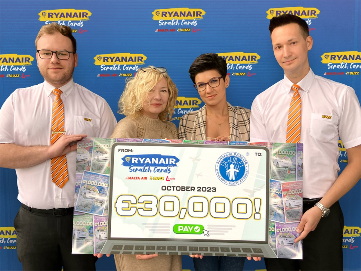 Ryanair wspiera Fundację Dzieciom. 30 tys. euro ze sprzedaży zdrapek przekazano na cele charytatywne