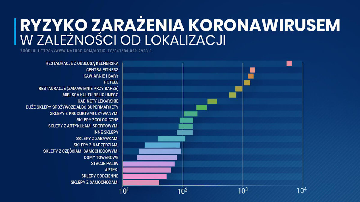 Hotele, restauracje, bary i centra fitness – to według rządu Mateusza Morawieckiego miejsca, w których transmisja koronawirusa jest największa. W oparciu o tę wiedzę rząd podjął decyzję o tym, by ograniczać ruch turystyczny w ferie zimowe. Otwarto wielkopowierzchniowe sklepy, zamknięte mają pozostać hotele, restauracje i siłownie. Dowodem na zasadność tego kroku ma być opublikowany przez rząd wykres, oparty na artykule w czasopiśmie Nature.