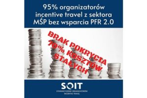 Pomimo udokumentowanego i związanego z obostrzeniami spadku obrotów (u członków SOIT wystąpiły w przedziale od 60 do 95 proc. w 2020 roku), spełnieniu kryterium wymaganego PKD, niezaleganiu z regulacją należności publiczno-prawnych, a także zatrudnianiu pracowników na umowę o pracę, większość agencji incentive travel zrzeszonych w SOIT nie zakwalifikuje się do pomocy PFR 2.0 z powodu ograniczenia sumy pomocy do 144 000 zł na jednego pracownika z Tarczy PFR 1.0 i PFR 2.0.