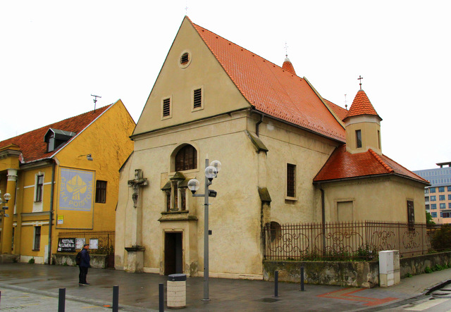Idziemy w stronę widocznej z daleka wieży miejskiej. Po drodze mijamy najmniejszy kościół w Trnawie, dobrze zachowany, pod wezwaniem świętej Heleny, zbudowany w XIV wieku. Wewnątrz zachowało się oryginalne sklepienie krzyżowo-żebrowe. Na fasadzie, nad portalem wejściowym znajduje się kamienna rzeźba przedstawiająca: św. Elżbietę, św. Helenę i św. Barbarę.