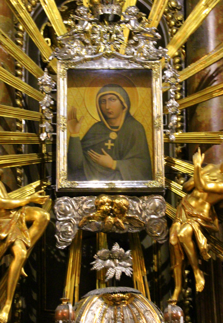 W 1636 wybudowano dla obrazu kaplicę św. Krzyża a w 1663 obraz po raz pierwszy pokazał swą cudowną moc. Kiedy wojska tureckie plądrowały okolicę, obraz Marii Panny uronił krwawe łzy i Turcy zaniechali oblężenia miasta. Potem obraz jeszcze cztery razy łzawił, w tym trzykrotnie podczas wojny kruckiej: 5 lipca, 10 i 11 sierpnia 1708 roku.