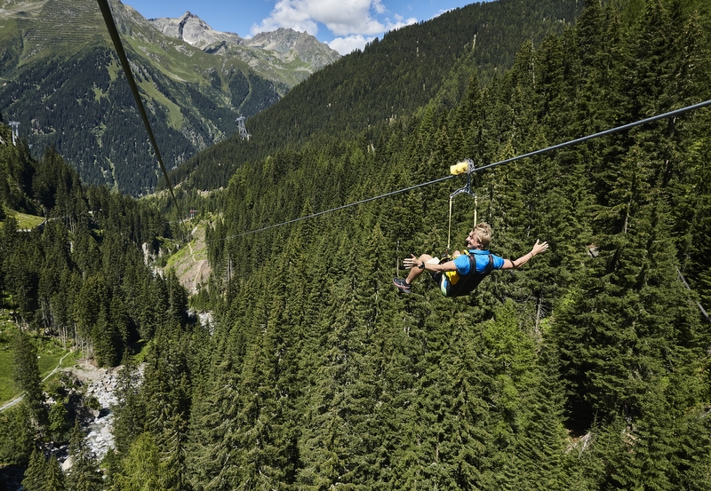 Tyrolka Ischgl Skyfly ma stanowić alternatywę dla trasy zjazdowej do doliny. Od środkowej stacji kolejki Silvrettabahn (1683 m n.p.m.) po dwóch śmiałków jednocześnie będzie mogło zjeżdżać na dwóch równoległych stalowych linach do doliny, a konkretnie na taras na dachu dolnej stacji kolejki Pardatschgratbahn (1376 m n.p.m.). Sprzęt narciarski oczywiście towarzyszy właścicielowi. Lęk przed prędkością i dużymi wysokościami jest niewątpliwie niewskazany ze względu na to, że lot odbywa się 50 m nad ziemią z zapierającą dech w piersiach prędkością nawet do 84 km/h. Trasa o długości 2 km ma dwie stacje pośrednie i biegnie atrakcyjnie pod mostem wiszącym na Kitzloch i linią nowej kolejki Fimbabahn. Przejazd Ischgl Skyfly kosztuje 39 euro za osobę (dzieci do lat 17: 25 euro), a bilety dostępne są online w sezonie zimowym lub na środkowej stacji Silvrettabahn.