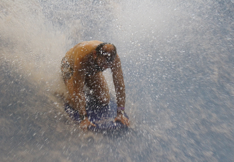 Kurs surfowania trwa krótko i nie jest skomplikowany. Instruktor wyjaśnia, gdzie jest spód deski, jak należy ja trzymać i w zasadzie od razu każe rzucać się plackiem (z deską pdo sobą) na wodę rwącą… do góry.