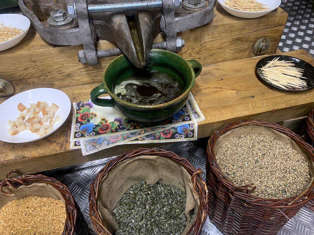 Zwiedzający mają okazję nie tylko poznać historię olejarstwa, ale także wziąć udział w pokazie tłoczenia oleju na zabytkowych prasach. Wizyta w olejarni to także możliwość degustacji lokalnych specjałów. W ofercie znajduje się kilkanaście rodzajów olejów, w tym mniej znane dziś oleje rydzowy, konopny czy makowy – wszystkie produkowane metodą tłoczenia na zimno.