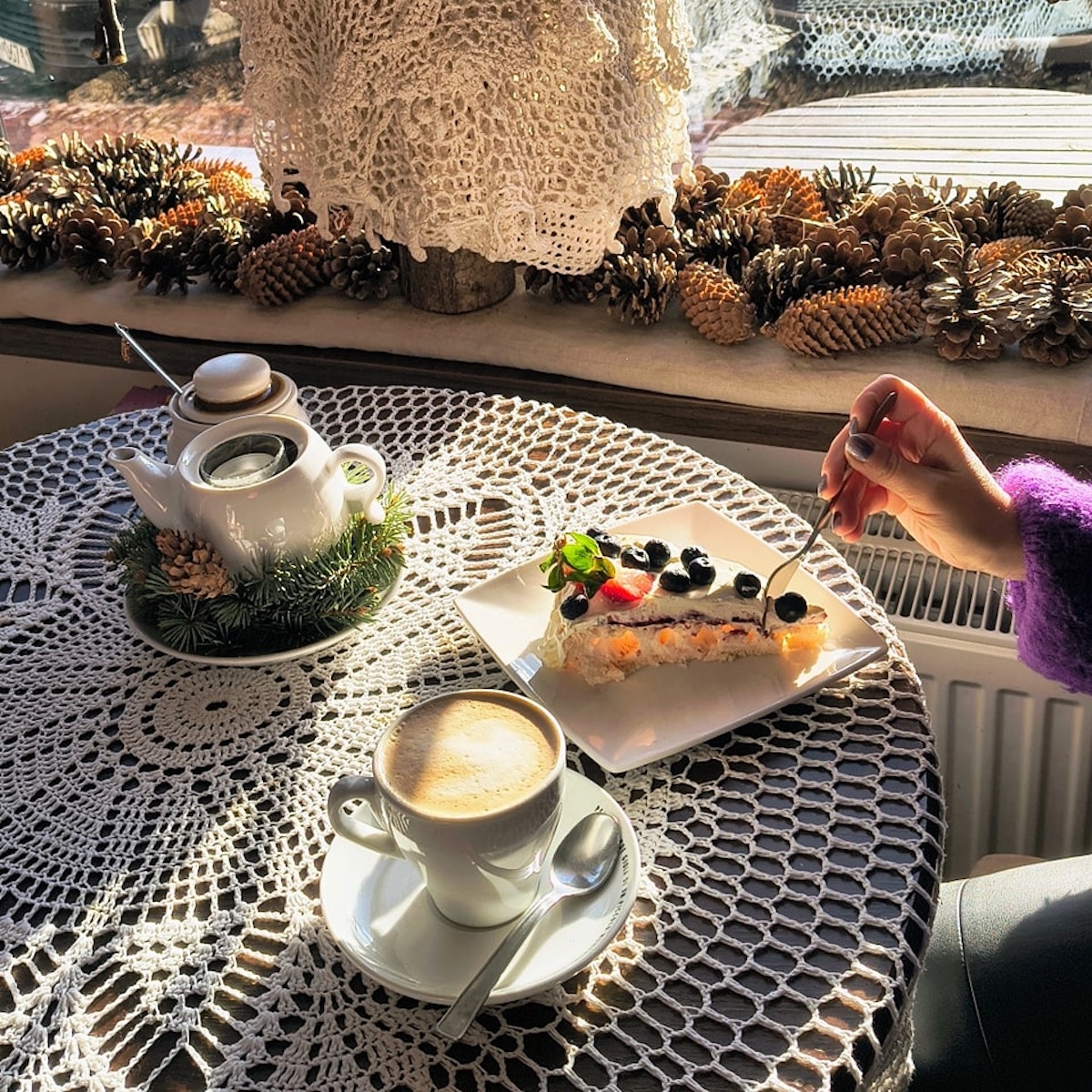 „Rynek – Kawiarnia-Galeria” to także przestrzeń artystyczna. Stylowe wnętrze przypomina bardziej galerię niż klasyczną kawiarnię. Na ścianach wiszą dzieła lokalnych twórców, na półkach stoją rękodzieła, które można kupić jako pamiątkę z podróży. Każdy detal ma tu swoją historię, a każdy przedmiot duszę.