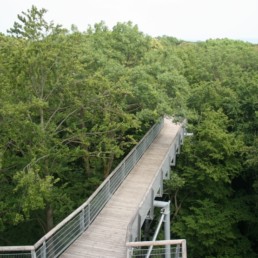 Drewniane pomosty wiodą nas ponad wierzchołkami drzew, wokół śpiew ptaków, gdzie okiem sięgnąć -…