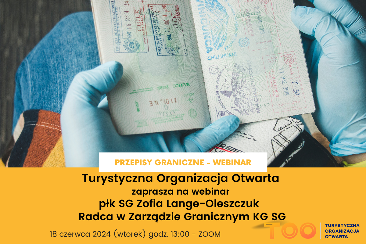 Turystyczna Organizacja Otwarta (TOO) zaprasza na webinar z udziałem Straży Granicznej, który odbędzie się we wtorek, 18 czerwca 2024 roku o godzinie 13:00. Wydarzenie skierowane jest do wszystkich zainteresowanych, nie tylko członków TOO. Celem spotkania jest dostarczenie informacji dotyczących przepisów paszportowych, wizowych oraz procedur granicznych, które są istotne dla organizatorów i agentów turystycznych.