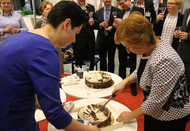 Właścicielka firmy Karolina Gnussowska-Weiss nagrodę odebrał z rąk wiceprezesa PIT Grzegorza Chmielewskiego. Na stoisku PIT czekało grono znajomych z gratulacjami i tort.