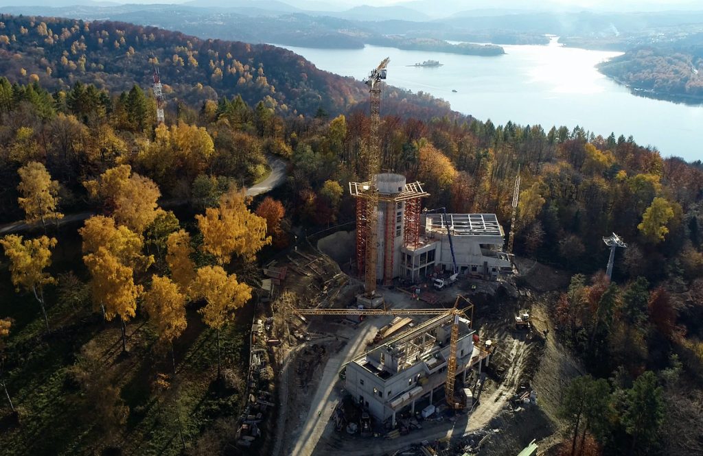 Polskie Koleje Linowe budują kolej gondolową i wieżę widokową nad Soliną Powstały już budynki stacji oraz wszystkie pięć podpór kolei widokowej, w tym najwyższa w Polsce sięgająca 75 metrów.
