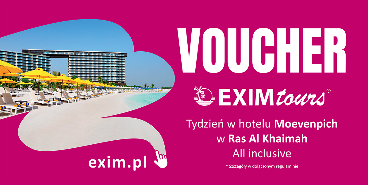 Ras Al Khaimah jest domem pustyni. Posiada piękne plaże na wybrzeżu Zatoki Perskiej. Znajdziemy tam obszary uprawne i skaliste góry. Niezwykłe wrażenie robi Wielki Kanion w Al-Hadżar. To wszystko będzie możliwe do odkrycia dzięki Exim Tours, które ufundowało voucher dla dwóch osób na tygodniowy wyjazd all inclusive do hotelu Moevenpick w Ras Al Khaimah. To nie koniec atrakcji! Jednym z punktów programu będzie niezapomniane safari.