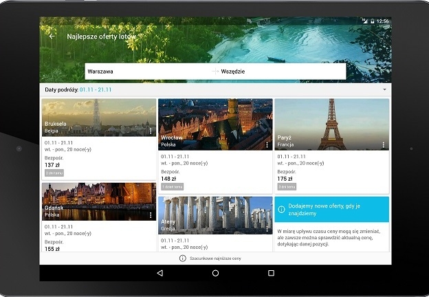 Błyskawiczne wyszukiwanie lotów: parametry wyszukiwania są automatycznie zapisywane w pamięci aplikacji, dzięki temu nie ma potrzeby ciągłego wpisywania niezbędnych do znalezienia lotu danych.