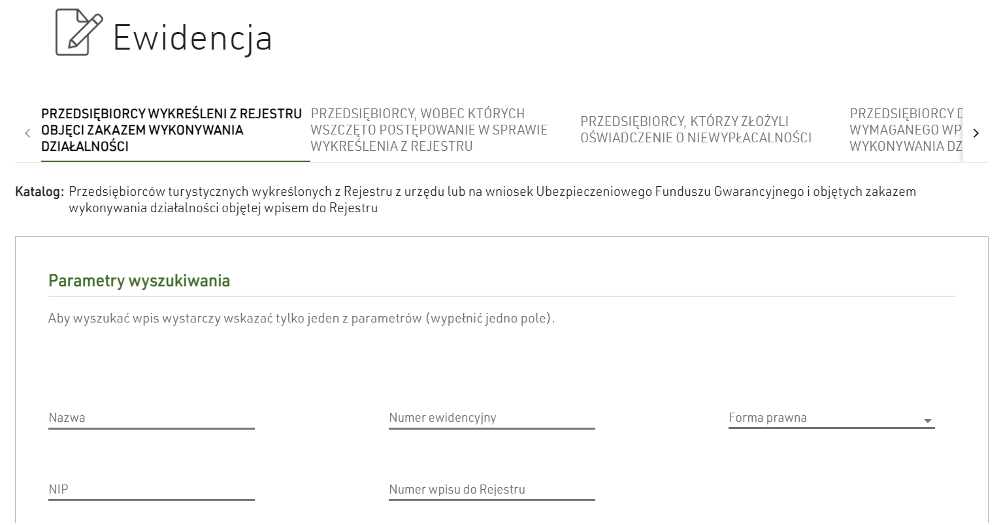 Warto wiedzieć, że w portalu TFG możemy sprawdzić także, czy wybrany przedsiębiorca nie jest objęty zakazem wykonywania działalności turystycznej bądź nie toczy się wobec niego postępowanie w sprawie wykreślenia z rejestru. Możemy również zweryfikować, czy przedsiębiorca nie złożył oświadczenia o niewypłacalności (lub czy wobec niego marszałek województwa nie wystąpił o wypłatę środków z zabezpieczeń finansowych bez uzyskania tego oświadczenia).