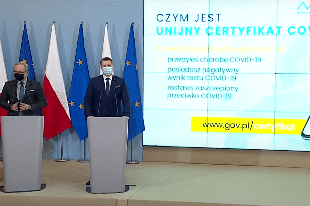 „Polska znalazła się wśród grupy siedmiu krajów, które od dzisiaj mają możliwość wydawać certyfikaty elektroniczne zgodne ze wszystkimi standardami. Można go pobrać z konta pacjenta w postaci elektronicznej, czyli kodu QR, albo dokumentu PDF, zawierającego te same informacje co kod QR” – poinformował Adam Niedzielski, minister zdrowia.