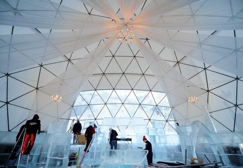 Budowniczego tego niezwykłego obiektu do tej pory wykorzystali piętnaście ton lodu, do zakończenia budowy trzeba obrobić jeszcze trzynaście ton. Niestety, nie waga lodu jest największym problemem przy budowie. Jest nim pogoda, wciąż jest zbyt ciepło jak na zimę. Temperatury minusowe panują tylko nocami, za dnia jest na razie plusowa temperatura lub zbliżona do zera. To stwarza problem przy spajaniu bloków lodowych. Nacjiężej w tych warunkach wykonać cztero i sześciometrowe wieże
