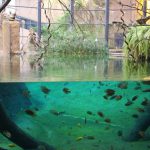 Spacer po Afrykarium to wędrówka poznawcza po wodach Czarnego Kontynentu – słonych i słodkich. Rozpoczyna się od Morza Czerwonego, gdzie możemy – bez nurkowania – obejrzeć rafę koralową znajdującą się tuż za szybą. Bajecznie kolorowe ryby (tysiące, tysiące) pływają tłumnie wśród korali i to pierwsze miejsce w Afrykarium, w którym chce się zostać na dłużej. A takich miejsc jest tutaj dużo…