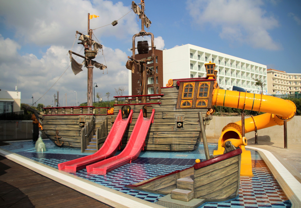 W sąsiednim Cypria Bay sezon zaczął się w kwietniu i skończy się jak zwykle wraz z ostatnim dniem października, To typowy obiekt rodzinny, również z basenem wewnętrznym, ale i z placem zabaw i parkiem wodnym dla dzieci (w postaci okrętu pirackiego). W tym obiekcie również znajdziemy pokoje z prywatnymi basenami, a także salę fitness, jacuzzi zewnętrzne przy barze. Dla dzieci jest osobne menu, stoliki i foteliki, można też wynająć opiekunkę.