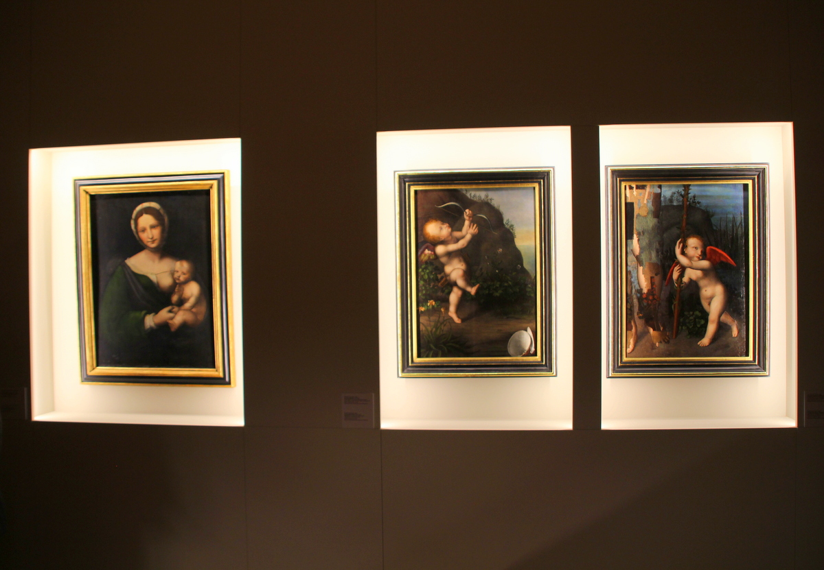 Na wystawie prezentowanych jest 39 obiektów, w tym 6 obrazów (na płótnie, desce i pergaminie) oraz grafiki i rysunki korespondujące formalnie i treściowo z niezwykłym obrazem Zbawcy Świata (Salvator Mundi) ze zbiorów Muzeum Pałacu Króla Jana III w Wilanowie, stanowiącym centralny punkt ekspozycji. Współcześnie znanych jest kilkanaście wersji obrazów o takiej kompozycji, powstałych w XVI w. Wilanowski obraz stanowi od dłuższego czasu przedmiot badań historycznych i konserwatorskich realizowanych we współpracy z ośrodkami naukowymi w Polsce i zagranicą.