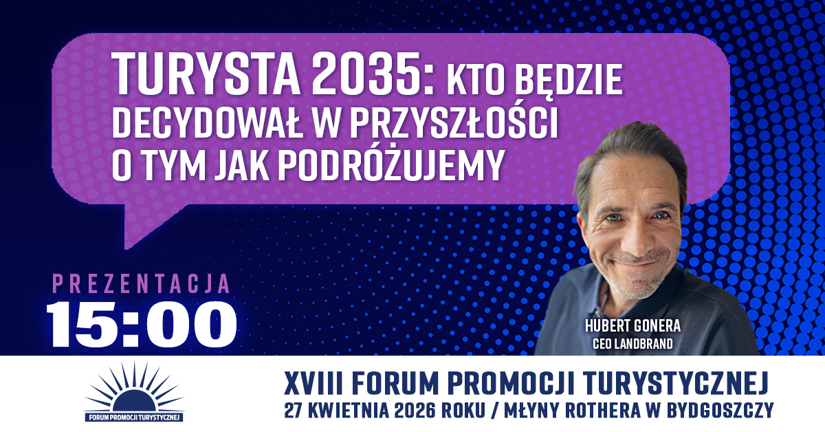 Podróżowanie w 2035 roku zacznie się na długo przed wyjazdem i w dużej mierze oprze się na danych oraz technologii. Turysta będzie podejmował bardziej świadome decyzje, a jego plan podróży będzie na bieżąco dostosowywany w trakcie pobytu. O tym, jak mogą wyglądać wyjazdy turystyczne w niedalekiej przyszłości, opowie podczas XVIII FPT Hubert Gonera, CEO Landbrand.