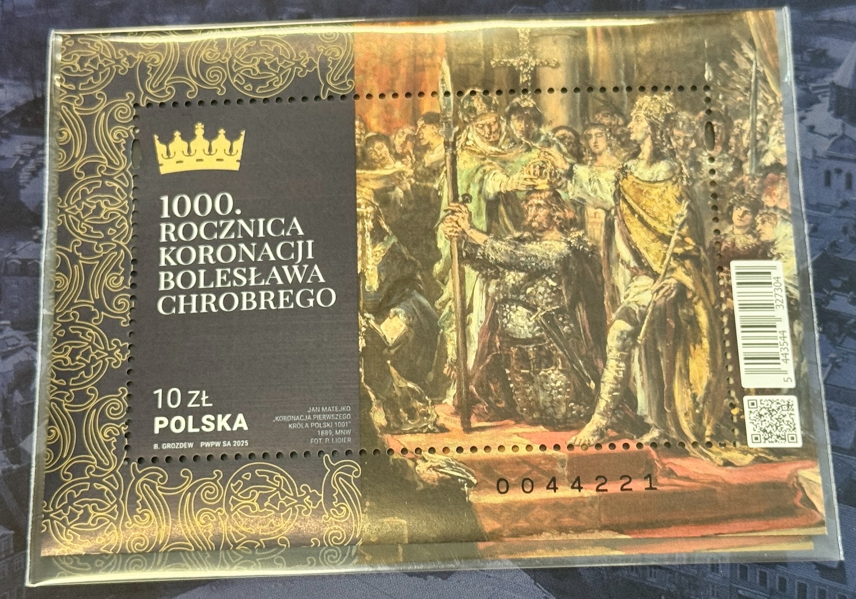 Do licytacji trafił również wyjątkowy album filatelistyczny, który upamiętnia milenium koronacji Bolesława Chrobrego. W środku znajduje się znaczek, na którym pokazano fragment obrazu Jana Matejki „Koronacja pierwszego Króla Polski ”. Ta kolekcjonerska gratka przedstawia jeden z najważniejszych momentów w historii kraju.