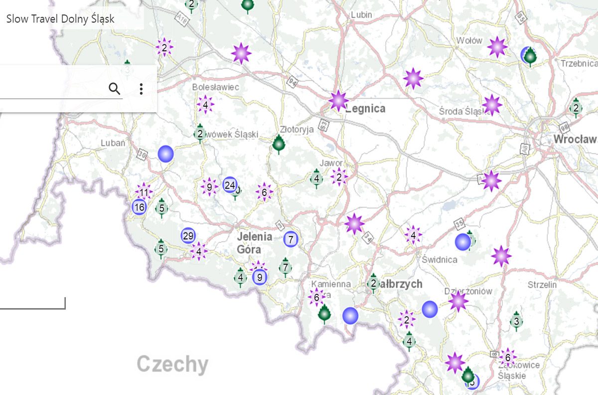 Slow Travel Dolny Śląsk to kampania mająca na celu zachęcenia do spokojnego i uważnego poznawania regionu. Ma ona przyczynić się do wzmacniania potencjału turystycznego w tym regionie. Aby sprostać oczekiwaniom turystów samorząd Dolnego Śląska z Dolnośląską Organizacją Turystyczną i portalem Slowshop.com stworzyli specjalną mapę w wersji online i papierowej, na której znajduje się wiele różnorodnych i wyselekcjonowanych atrakcji. Jest dostępna w czterech językach dając możliwość zagranicznym turystom na zwiedzanie w rytmie slow. Zestawienie pozwala na odnalezienie mniej znanych atrakcji i ciekawostek turystycznych oraz bardzo często miejsc, które nie posiadają rozwiniętej infrastruktury. Te ostatnie są wyjątkową atrakcją dla turystów, którzy poszukują ucieczki od miejskiego zgiełku i hałasu. Mapa nie stanowi zamkniętej bazy i jest stale poszerzana o nowe miejsca.